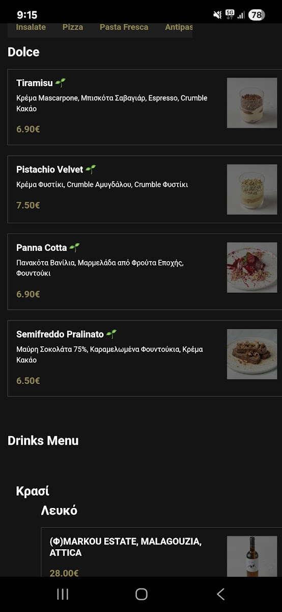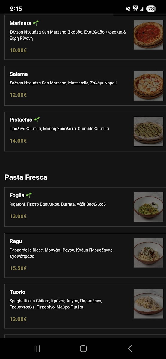 The atmosphere encourages savoring good food at a relaxed pace—whether indulging in rich truffle-touched pizzas, pairing slices with a glass of red wine, or finishing off with a traditional Τιραμισού. Drinks are limited but thoughtfully chosen, creating a well-rounded experience aligned with the approachable menu.