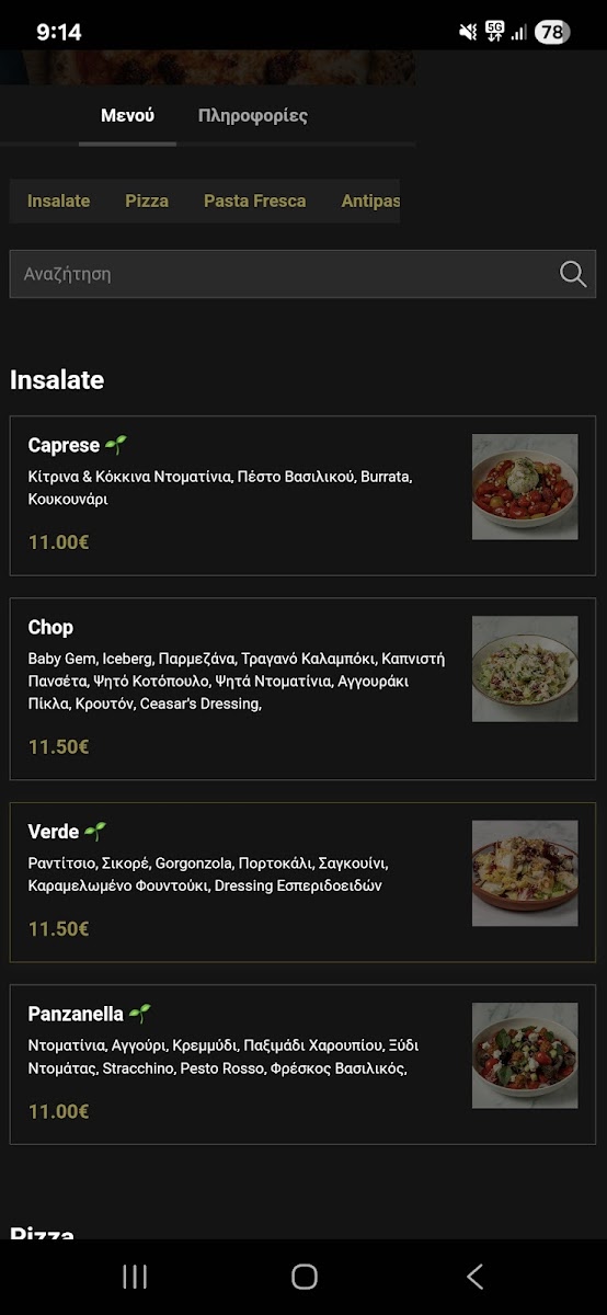 Guests can expect to find well-loved favorites like Margherita Pizza and Piccante Pizza alongside fresh salads such as Caprese Σαλατα and comforting pasta options including Lasagna Bolognaise and Caneloni. For starters, simple bites like Mozzarella Sticks and μπαστούνια με λάδι και σκόρδο (breadsticks with oil and garlic) complement the main dishes, making for easy sharing around the table.
